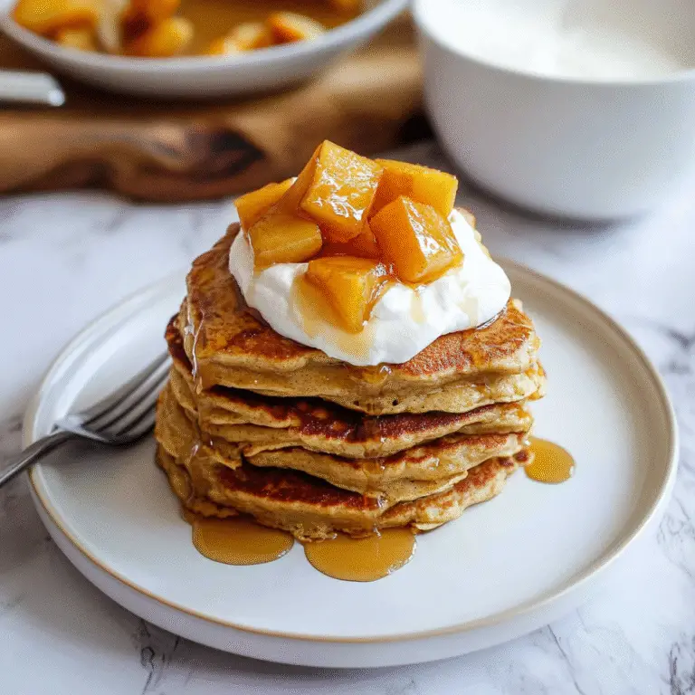 Fluffy Spiced Pancakes With Caramel Apple Compote Recipe