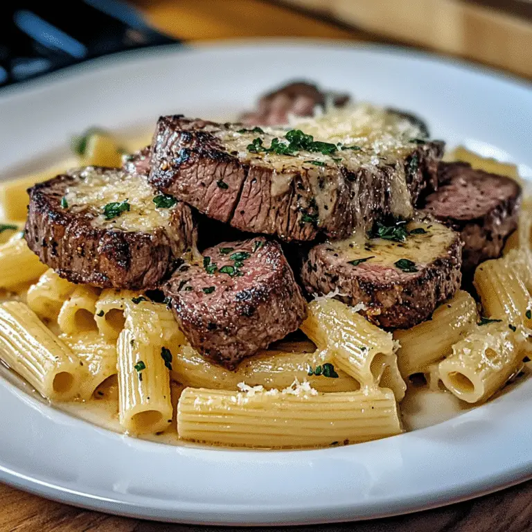 Mouthwatering Garlic Butter Steak with Cheesy Rigatoni Recipe