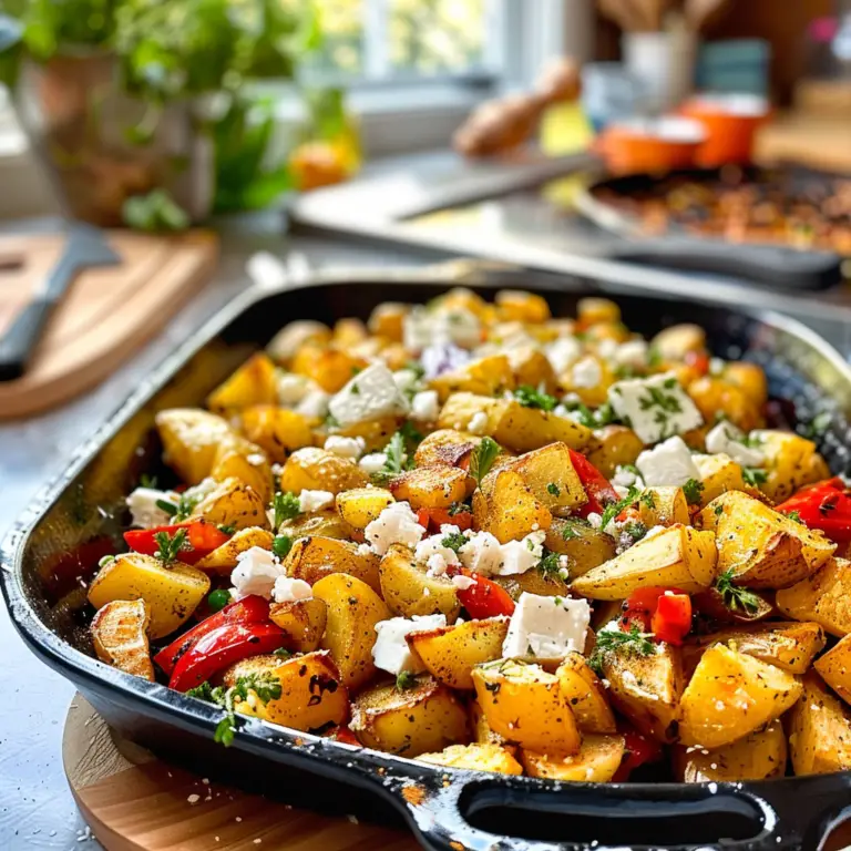 Irresistible Greek Roasted Potatoes With Peppers & Feta