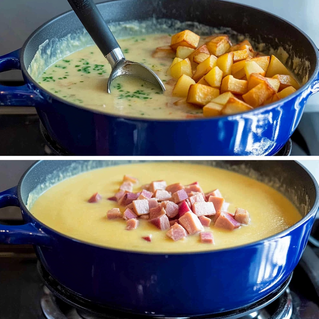 Start by sautéing onions and garlic to build flavor, then add potatoes and ham followed by broth. Let it simmer until everything is tender for the best results.