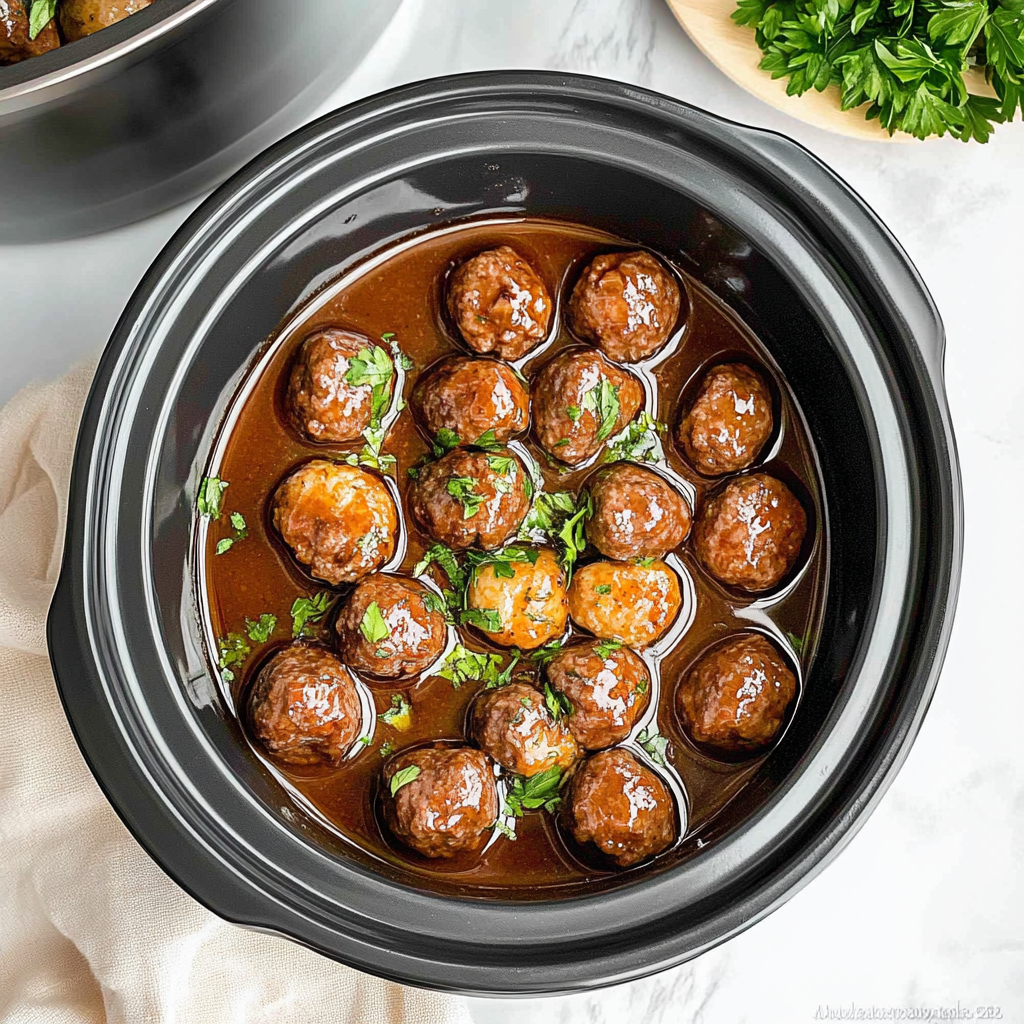 Start by browning the meatballs in a skillet for extra flavor before placing them in the slow cooker. Then, whisk together the gravy ingredients while the meatballs cook low and slow for maximum tenderness.