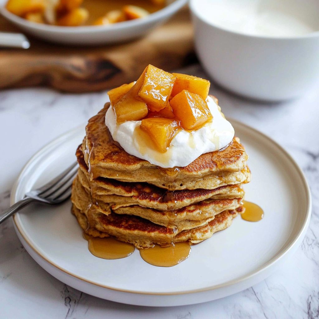 Serve & Enjoy: Stack those fluffy spiced pancakes high on plates. Top generously with warm caramel apple compote and maybe even a scoop of whipped cream—because why not?