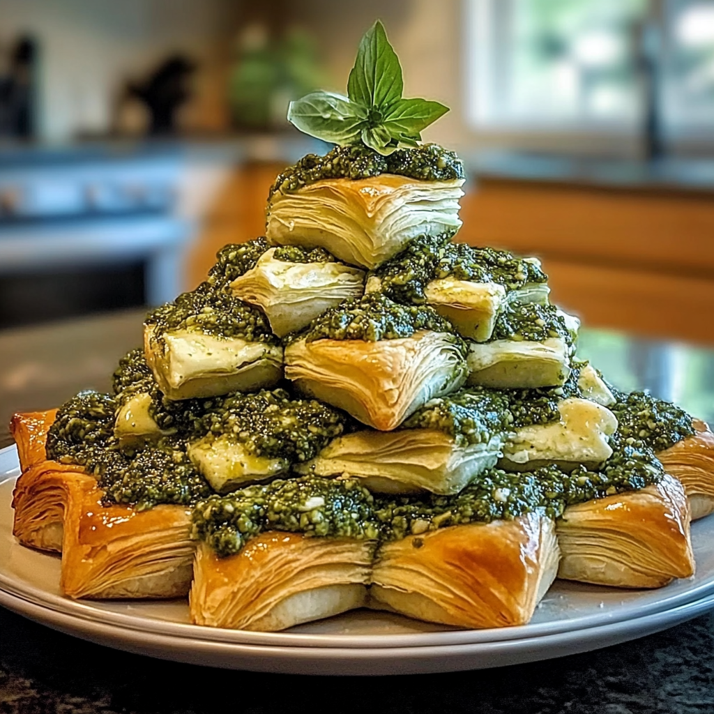 Start by preheating your oven to 400°F (200°C). Roll out the puff pastry, layer on the pesto and cheese, then shape into a tree. Bake until golden brown and flaky—about 20 minutes for perfect results.