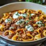 Cheesy Beef Enchilada Tortellini is a delightful fusion dish that marries rich, cheesy tortellini with savory beef and zesty enchilada flavors. This one-pan wonder is perfect for busy weeknights, offering a comforting and satisfying meal that’s sure to impress family and friends. With its vibrant colors and mouthwatering aroma, it’s not just a feast for the stomach but also for the eyes. Serve it hot, garnished with fresh cilantro for an extra burst of flavor!