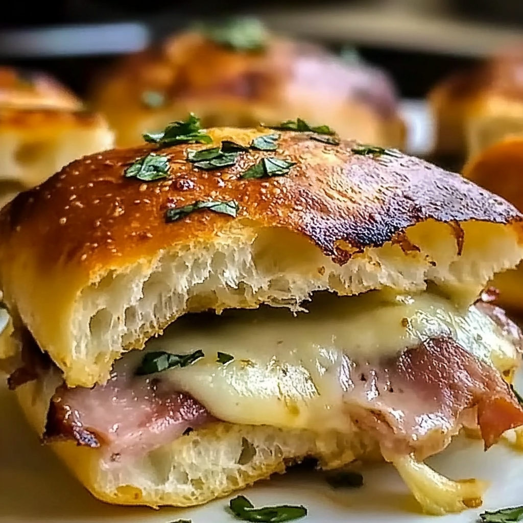 Bake Until Golden Brown: Place the assembled sliders on a baking sheet and bake for about 15-20 minutes until the cheese melts beautifully and the tops turn golden brown.