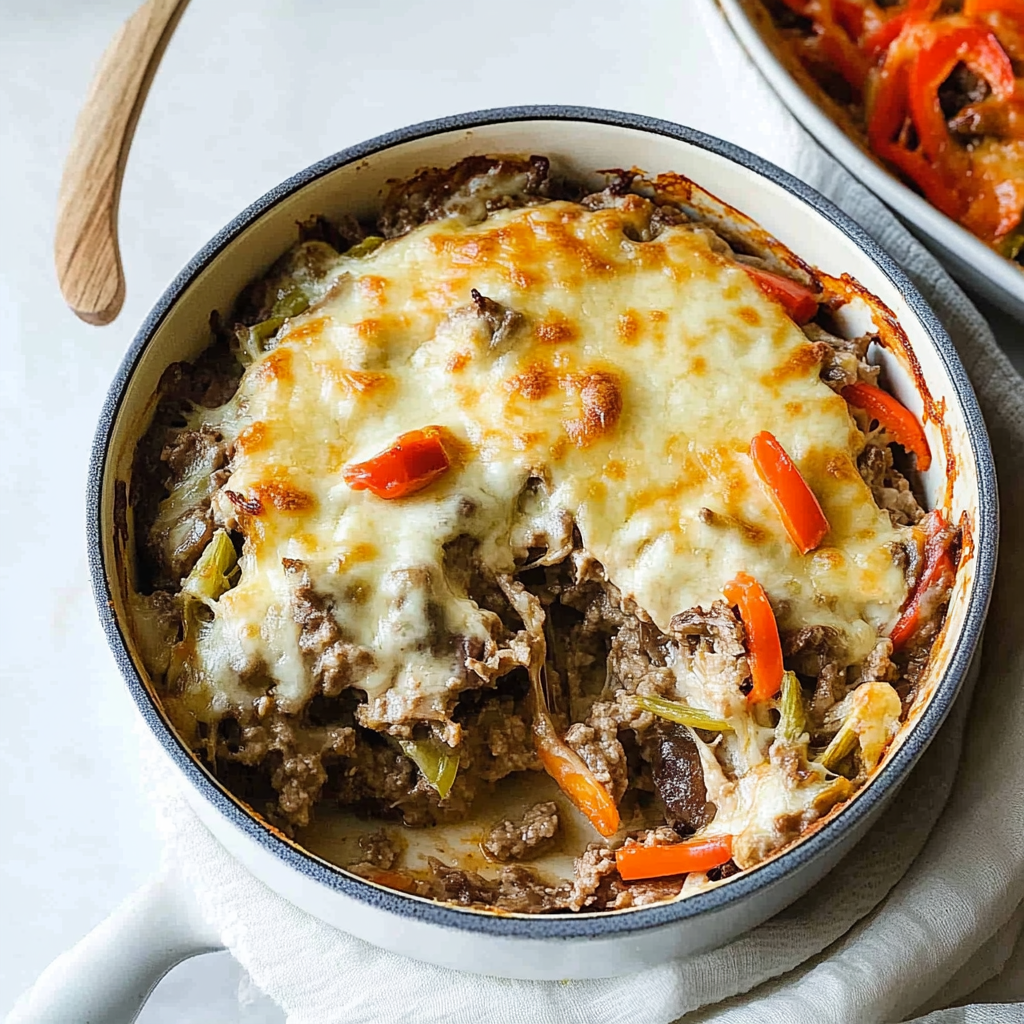 Cheesy Low Carb Philly Cheesesteak Casserole is a comforting and indulgent dish that satisfies cravings without the carbs. This delightful casserole features tender ground beef, sautéed peppers and onions, all enveloped in a luscious blend of cream cheese and sharp cheddar. Perfect for family dinners or casual gatherings, this dish is visually stunning and incredibly easy to prepare, making it a go-to choice for any occasion.
