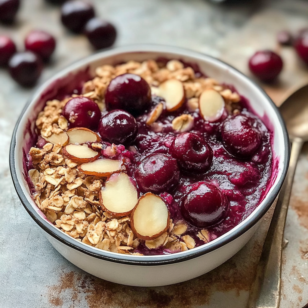Enjoy each bite of this Cherry Almond Maple Crisp Delight as flavors meld together in perfect harmony!