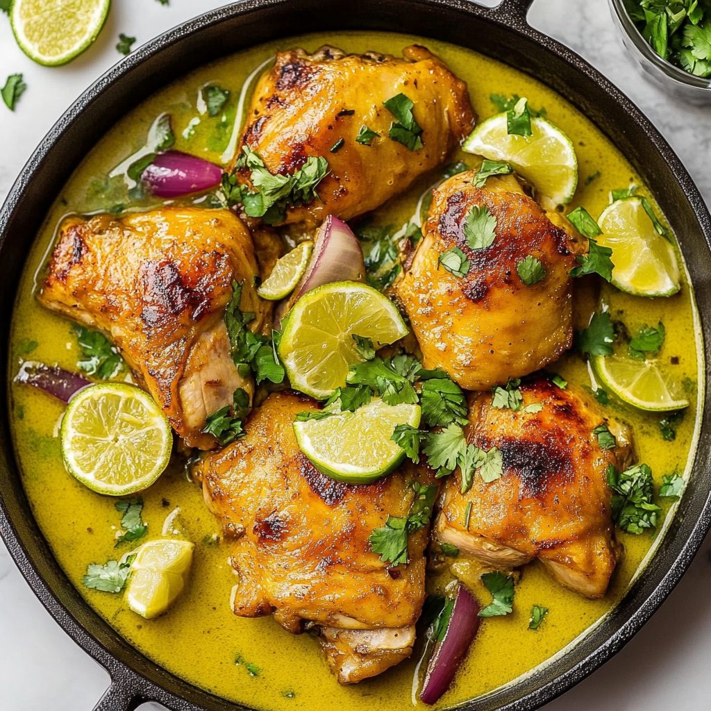 Sear the chicken first until golden brown, then simmer with coconut milk and spices for tender results.