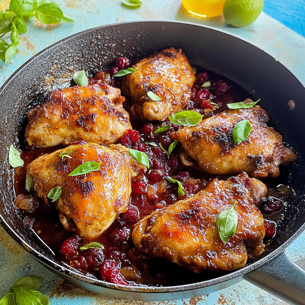 Sear the chicken in a hot pan to lock in juices, then simmer with cranberries and orange zest for deep flavor.