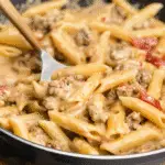 Toss in Pasta: Add cooked pasta into the skillet with the creamy sauce. Mix thoroughly until every noodle is coated with that delightful goodness! Sprinkle shredded cheese on top before serving for extra cheesiness.