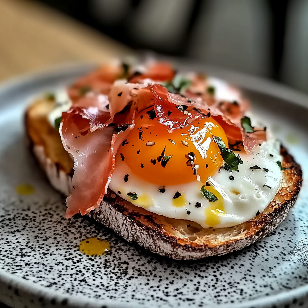 Fried Egg Yolk, Burrata and Prosciutto Toast is a delightful breakfast dish that combines the rich creaminess of burrata, the salty crunch of prosciutto, and a perfectly fried egg yolk atop crispy toast. This elegant yet easy-to-make recipe is perfect for brunch gatherings or a relaxed weekend breakfast. Each bite offers a harmonious blend of flavors and textures that will impress your family and friends.