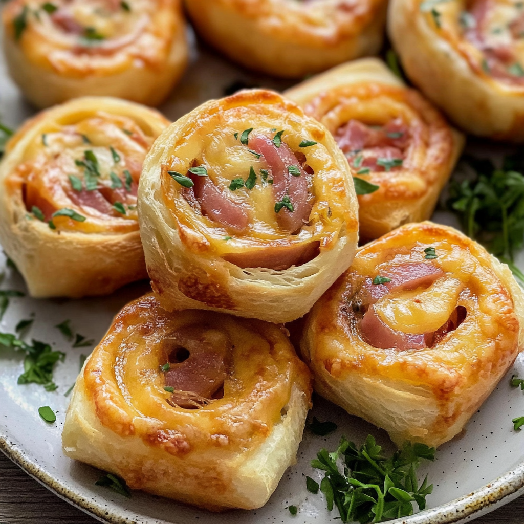 Start by preheating your oven to 375°F (190°C). Roll out the dough, layer on ham and cheese, then slice into pinwheels before baking for 15-20 minutes until golden.
