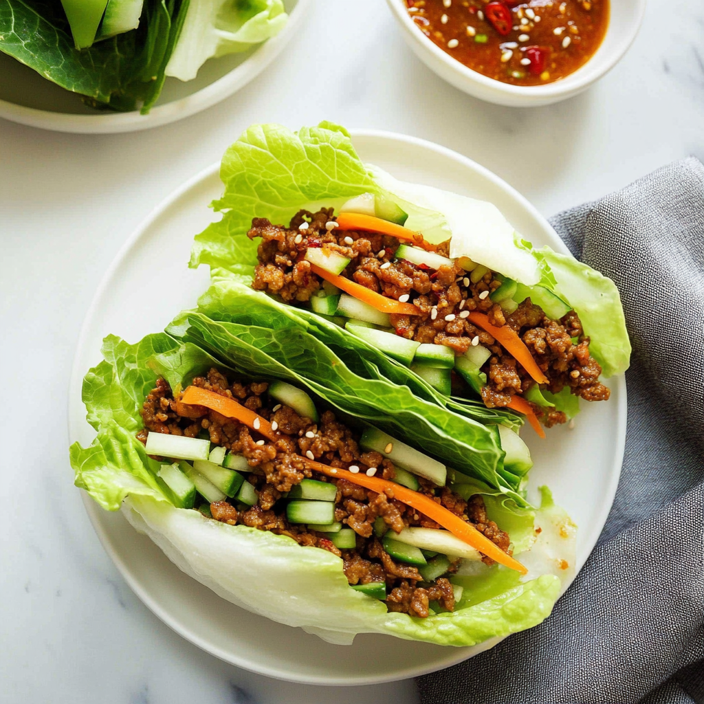 Korean Ground Beef Lettuce Wraps offer a delightful fusion of flavors wrapped in crisp lettuce leaves. This quick and easy dish combines savory ground beef with fresh vegetables, garlic, and ginger for a taste sensation that’s perfect for busy weeknights or entertaining guests. Each bite is packed with sweet, spicy, and umami notes, making these wraps a family favorite that everyone will love.