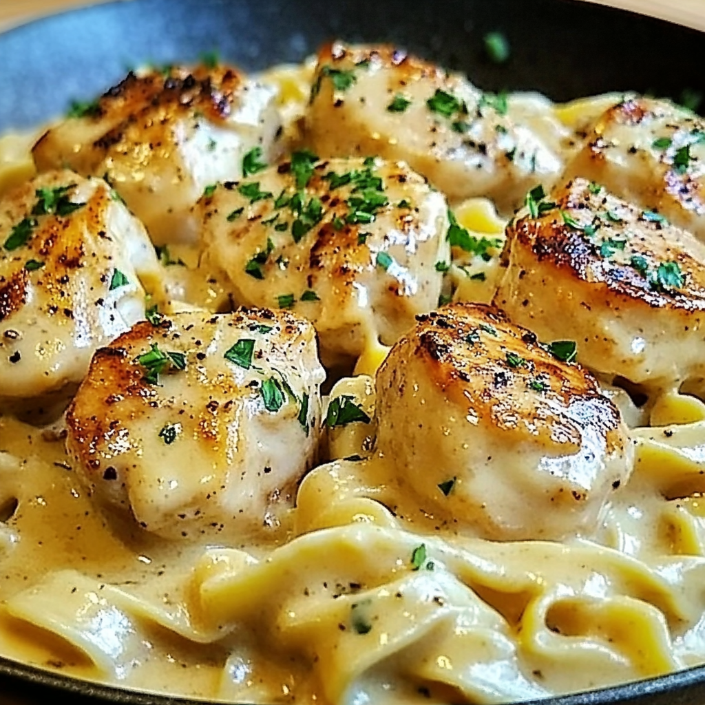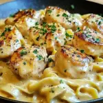 One-Pan Creamy Garlic Butter Chicken & Egg Noodles is the ultimate comfort food, delivering tender chicken in a rich, creamy sauce paired with perfectly cooked egg noodles. This dish is not only delicious but also incredibly easy to prepare and clean up, making it ideal for busy weeknights or special gatherings. With minimal ingredients and maximum flavor, this recipe is sure to become a family favorite!