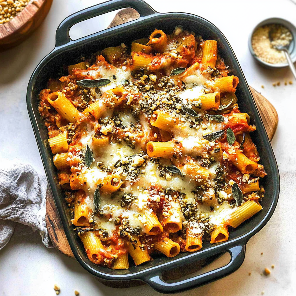 [info_box title=”Why You’ll Love This Recipe”] This Pasta Bake with Pumpkin Tomato Sauce is easy to prepare, making weeknight dinners stress-free. The combination of flavors creates a deliciously comforting dish that looks stunning on any table. It’s versatile enough for leftovers or can be served fresh out of the oven. Perfectly satisfying for both vegetarians and meat-lovers alike! [/info_box]