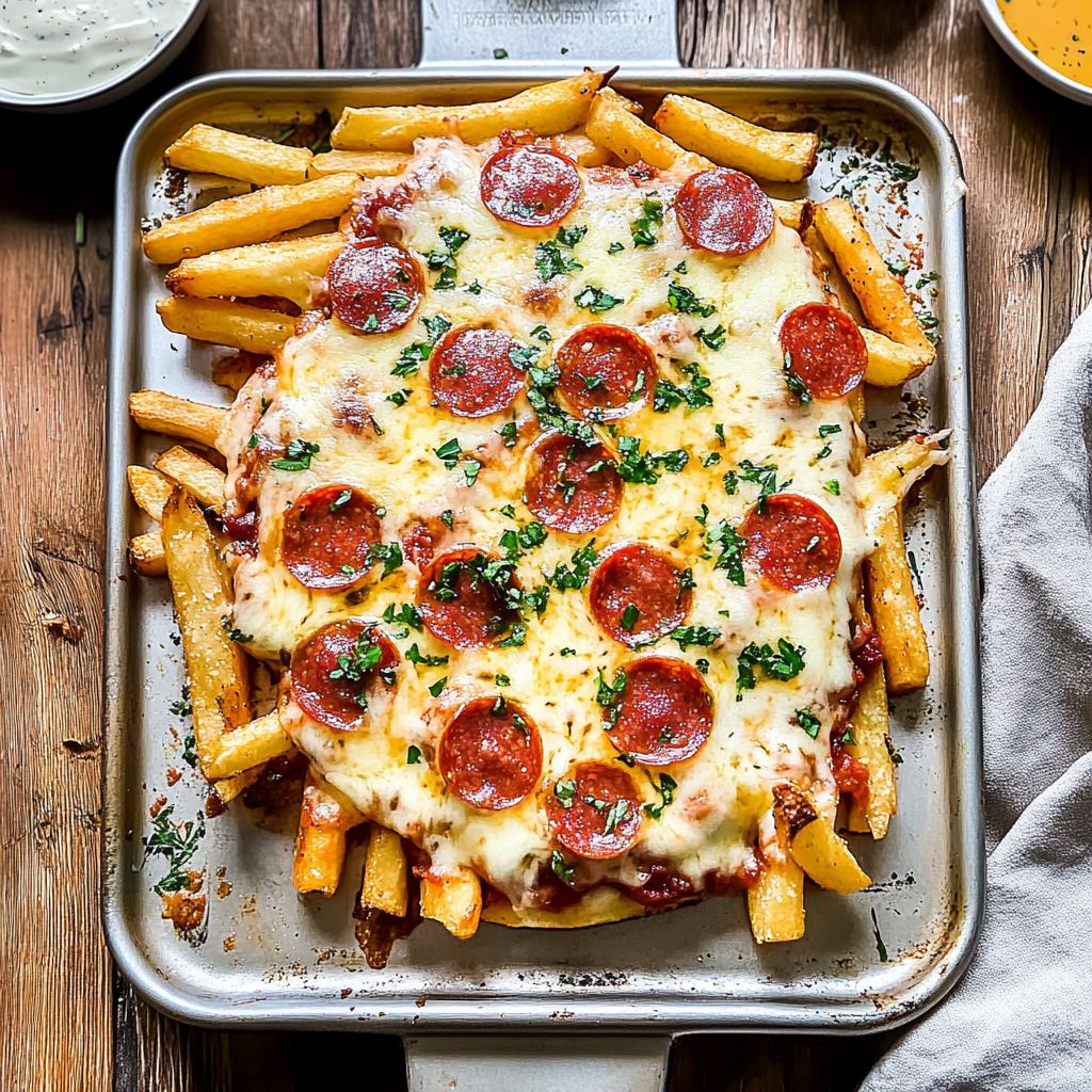 Indulge in the ultimate comfort food with these irresistible pizza fries! Crispy golden fries are topped with gooey mozzarella, savory pepperoni, and zesty pizza sauce, creating a delicious fusion that’s perfect for game nights or casual gatherings. Simple to prepare and endlessly customizable, this dish is sure to impress your family and friends, leaving them craving more!