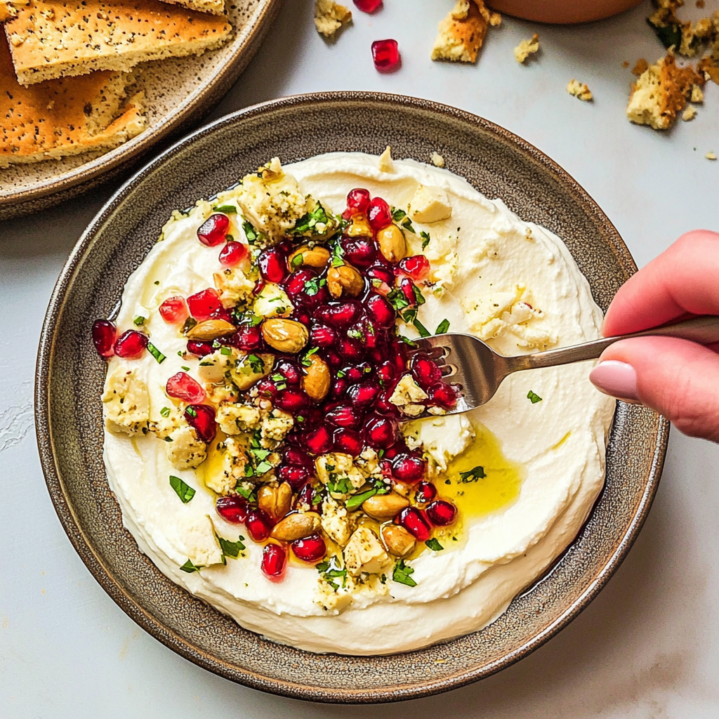 Start by blending feta and cream cheese until smooth, then fold in pomegranate seeds and chopped pistachios for added crunch. This sequence maximizes flavor integration while keeping textures distinct.