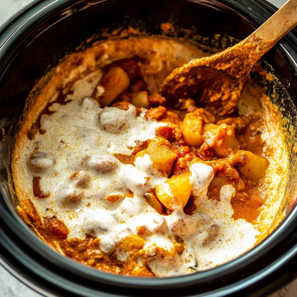 Slow Cooker Potato & Chickpea Tikka Masala is a vibrant, aromatic dish that combines tender potatoes and hearty chickpeas in a rich, creamy coconut sauce. Perfect for busy weeknights, this easy-to-make recipe brings the flavors of Indian cuisine into your home. Serve it warm over fluffy basmati rice or with soft naan for a comforting meal that will delight family and friends.