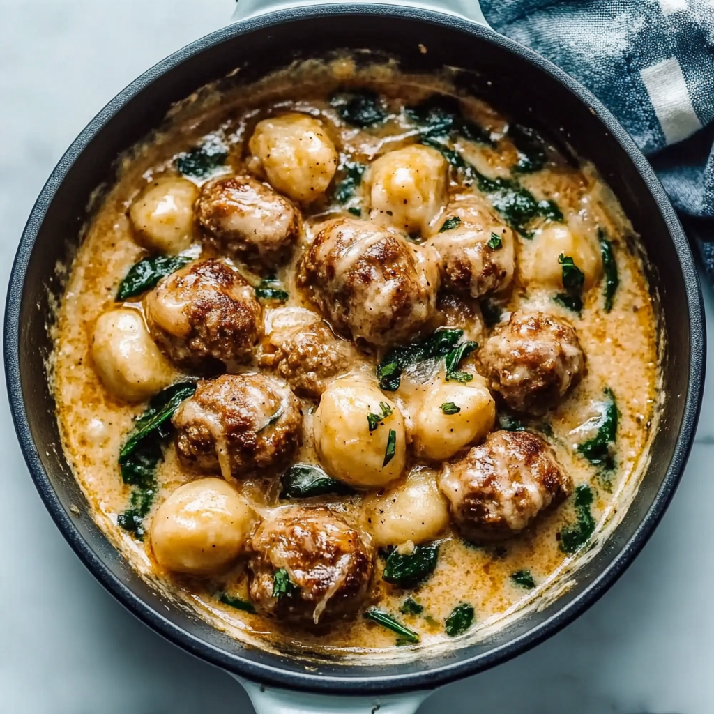[info_box title=”Why You’ll Love This Recipe”] This recipe combines ease of preparation with incredible flavor, making weeknight dinners effortless yet delightful. The creamy sauce beautifully coats the meatballs and gnocchi, ensuring every bite is a treat. With vibrant colors and enticing aromas, it’s visually appealing on any table setting. Perfect for family dinners or entertaining guests with minimal fuss. [/info_box]