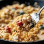 Toss in Pine Nuts and Cheese: Add toasted pine nuts and grated Parmesan cheese to the skillet. Creamy Chicken Enchilada Dip Mix thoroughly until everything is well combined, creating a creamy sauce that clings to each piece of pasta.