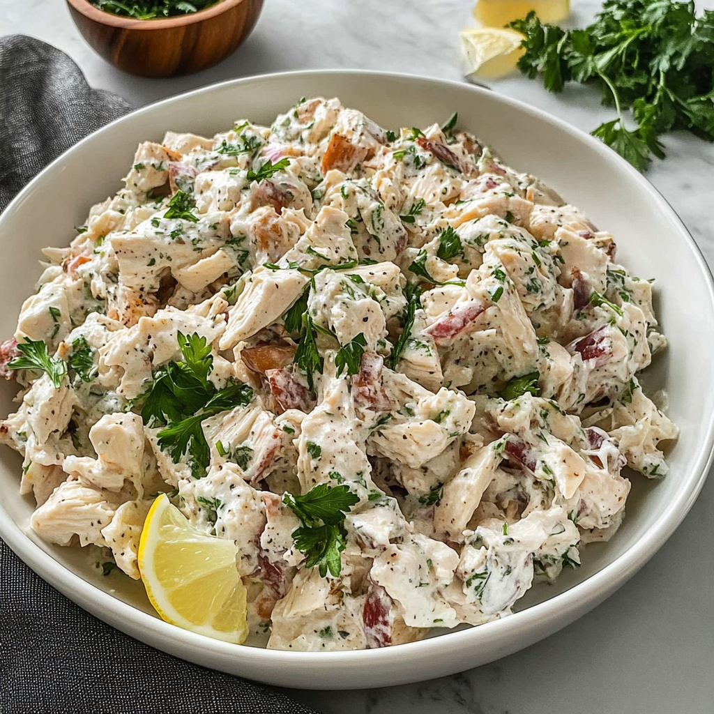 [info_box title=”Chef’s Helpful Tips”] Use fresh herbs for brighter flavors; they elevate this salad beyond the ordinary. Shredding chicken while warm helps retain moisture, making each bite juicy. Avoid over-salting until served; flavors develop as it sits, leading to a perfect balance. [/info_box]