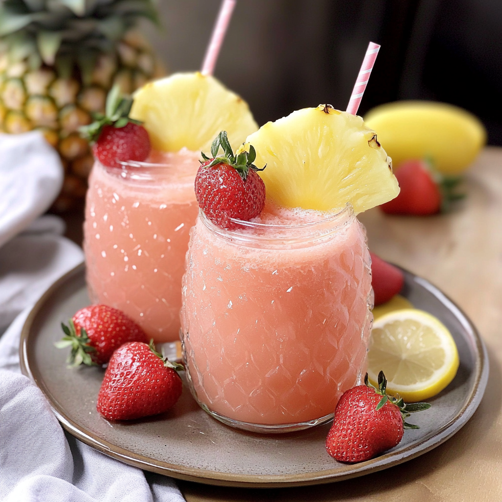 Pineapple Pink Lemonade is a vibrant, refreshing drink that captures the essence of summer in every sip. Combining the tropical sweetness of ripe pineapple with the tangy zest of fresh lemons, this delightful beverage offers a perfect balance of flavors. Ideal for poolside lounging or picnics with friends, it’s not just a drink but an experience that brightens any occasion. Easy to prepare and visually stunning, Pineapple Pink Lemonade will impress guests of all ages and can even be spiced up with a splash of your favorite alcohol for an adult twist.