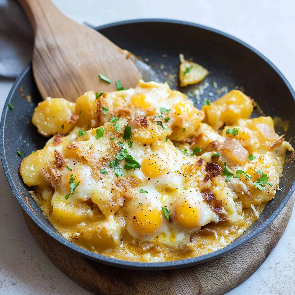 Picture this: a lazy Sunday morning, your family gathered around the table, laughter filling the air. This Cheesy Potato Egg Scramble is not just a dish; it’s an experience that brings smiles and comfort. The first bite sends you straight to flavor town, where every forkful is a delicious reminder of home-cooked goodness.